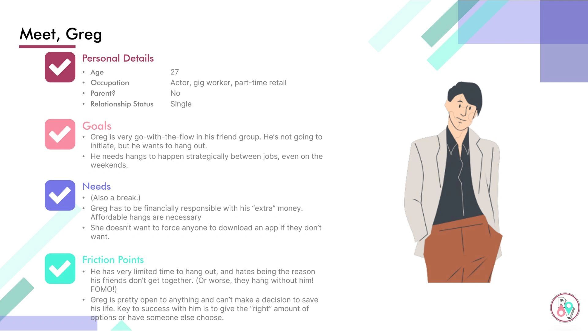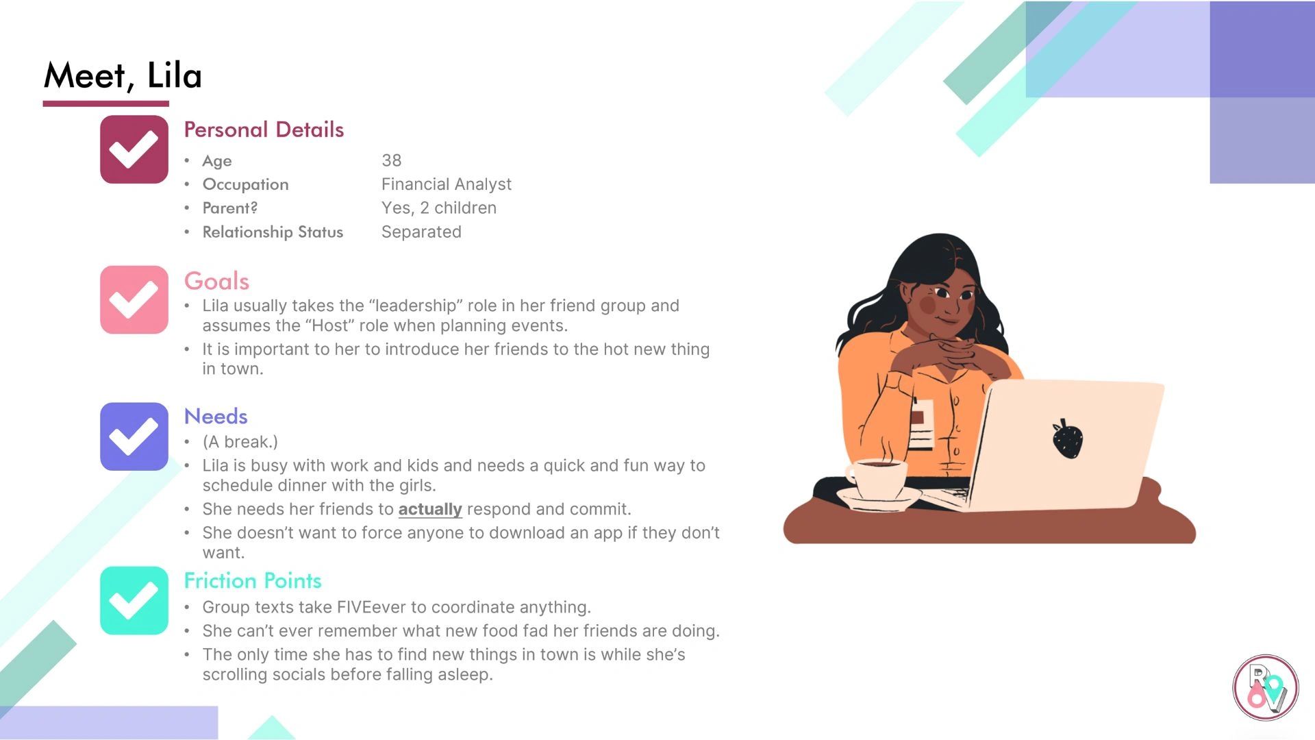 From a demographics standpoint, I wanted to capture the needs of as many diverse backgrounds as possible. I developed two personas to capture the many-faceted lives of all the users I intend to capture attention from. These personas further helped guide how I would ultimately design the app.