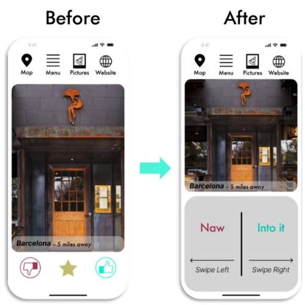 I opted to create a directional box to visually instruct users how to interact with it. For folks on dating applications, it was intuitive to swipe right. Users who had not used a dating app or had some time since thought it should be the other way around -- swipe left if you like something, swipe right if you do not. I ultimately decided to follow status quo with what dating applications are doing currently.